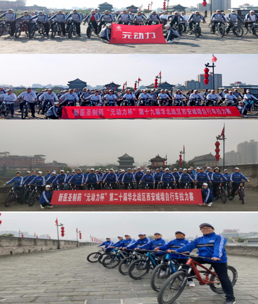 作为我国保留最完整的古代城垣,明城墙展现了他得天独厚的历史底蕴,虽然在这个和平时代已不再发挥他原有的军事防御作用,但是凭借他自身的魅力,在一众旅游胜地中,尤其的受驴友们喜爱,到西安,必打卡。在城墙上随处可见拍婚纱照的、跑马拉松的、抖音直播的、但最为亮眼的必然是元动力自行车拉力赛的大部队,统一的战服,潇洒的身姿,所到之处游人纷纷侧目,元动力队伍瞬间成了城墙上别具特色的风景线。一声“出发”拉开了乐竞体育制药“元动力杯”西安城墙自行车拉力赛的序幕。看!年轻的、年老的、男的、女的,元动力老师个个神采奕奕,保持最帅姿势向着终点前进,比赛赛段设定在安远门骑行至安定门,比赛宗旨在于“放松身心,体验骑行”的乐趣。通过锻炼身体,让每一位参赛者亲身实践,身体力行,作为健康事业的传播者,人民健康的守护神,不但要有高超的专业诊疗技能,还要有强健的体魄,这样才能将健康、将爱心传递给更多的人。乐竞体育制药作为东道主更为优胜者准备了具有陕西文化的精美纪念奖品,纪念我们的相聚,纪念这座城市留下的印记。